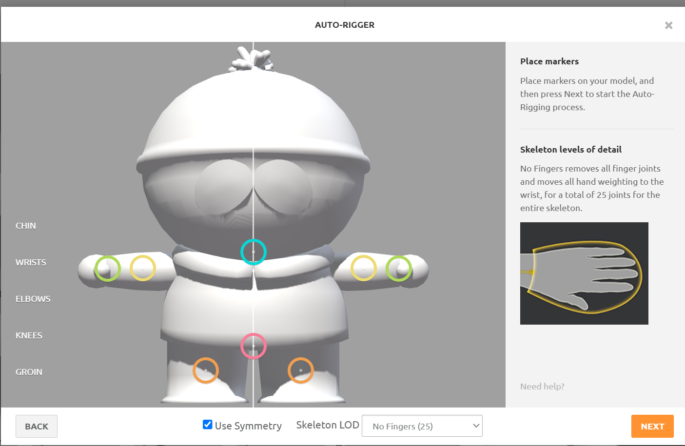 Autorigger でポイントを移動して位置を設定 指はないのでnofinger で