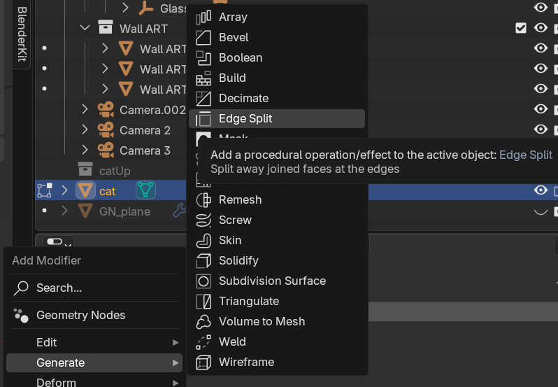 モディファイアのEdgeSplit 辺分離 をつけて